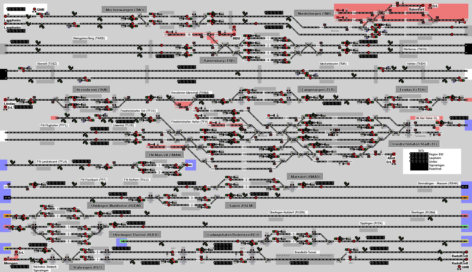 Geniesst die schöne Seeluft und steuert die Strecke aus Thalwil ab Oberrieden bis und mit Pfäffikon SZ. Eure Partner sind: Rapperswil, Ziegelbrücke, Zimmerberg sowie SOB Süd, wo die Linien nach Burghalden und Freienbach SOB hinführen. Dieses Stellwerk durchfahren alle Arten von Zuggattungen, nämlich von internationalen RailJets und Nightjets welche Richtung oder aus Österreich unterwegs sind, über InterCitys und InterRegios bis hin zu S-Bahnen und Güterzügen. Die Güterzüge müssen in diesem Stellwerk oftmals auf die Seite genommen, um die Schnellzüge überholen zu lassen. Das Erbauer-Team der Schweiz wünscht viel Vergnügen mit dem Stellwerk Etzel. => Zugnummern der Schweiz (Wikipedia - Punkt 6) || www.sbb.ch |